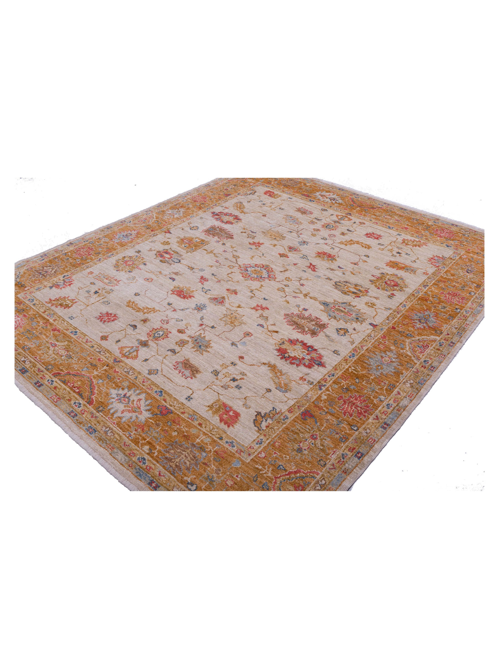Angora Oushak 144629 Ivory Orange 8.3x9.8 Hand Knotted Rug