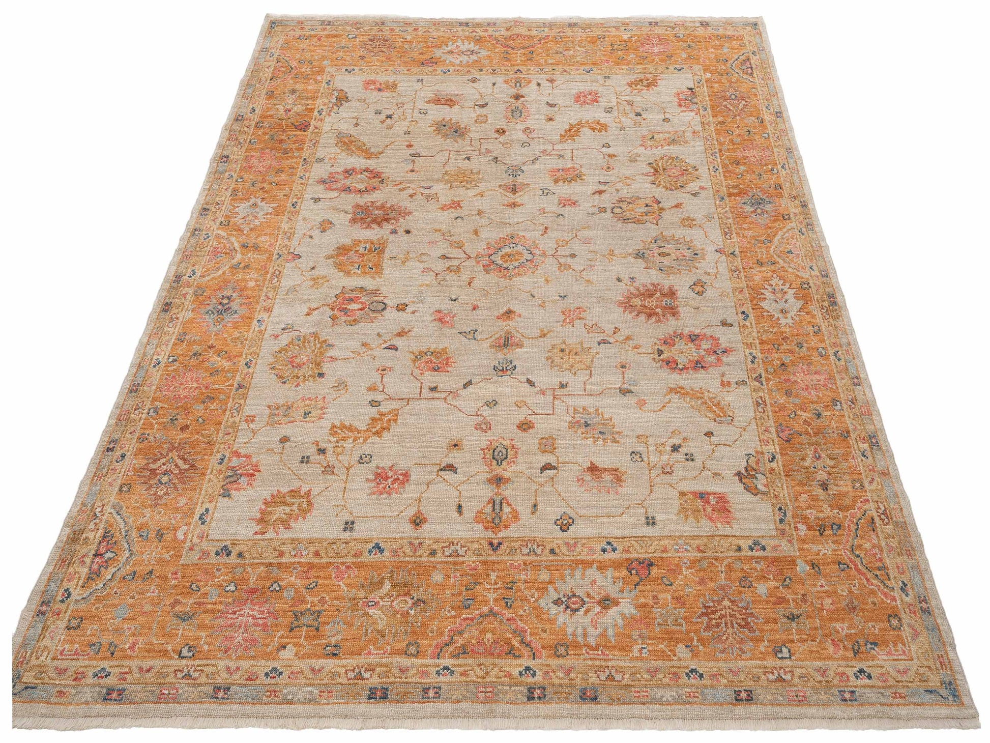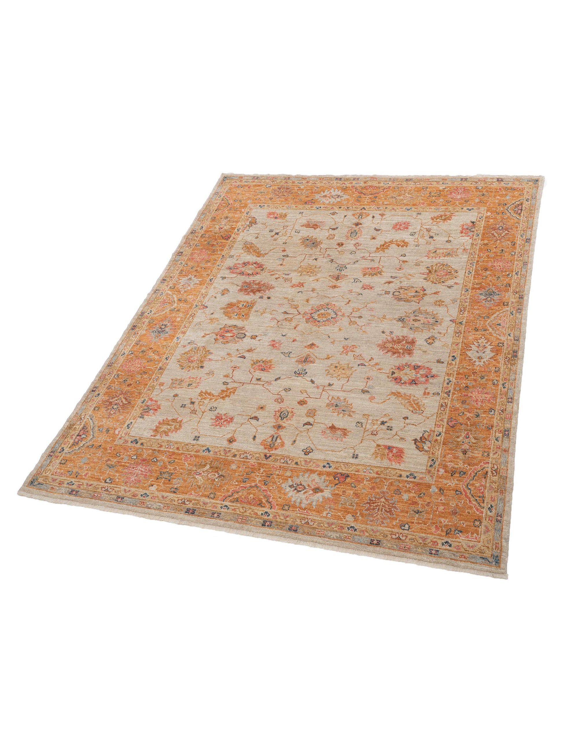 Angora Oushak 145825 Ivory Orange 8.3x9.8 Hand Knotted Rug