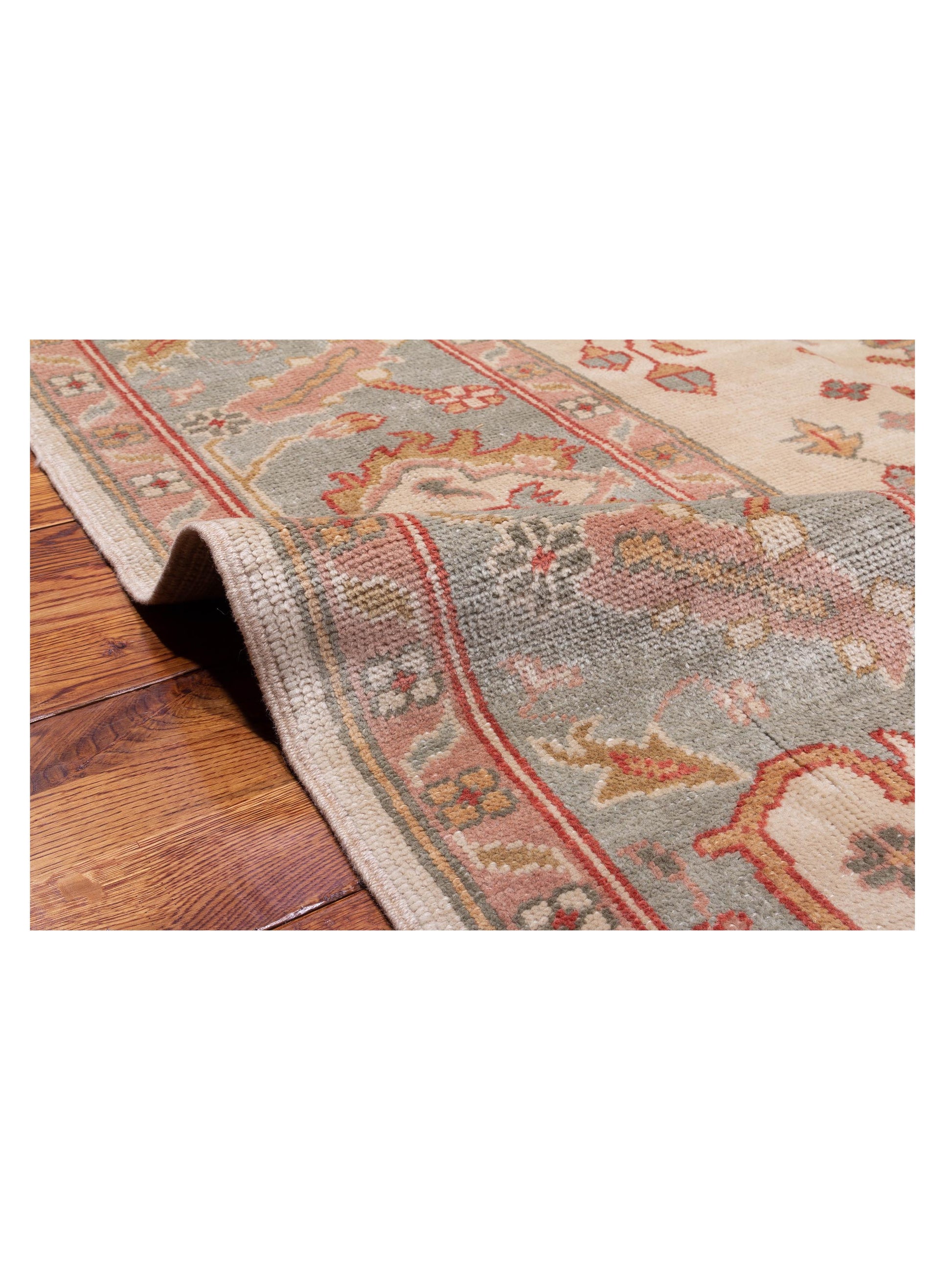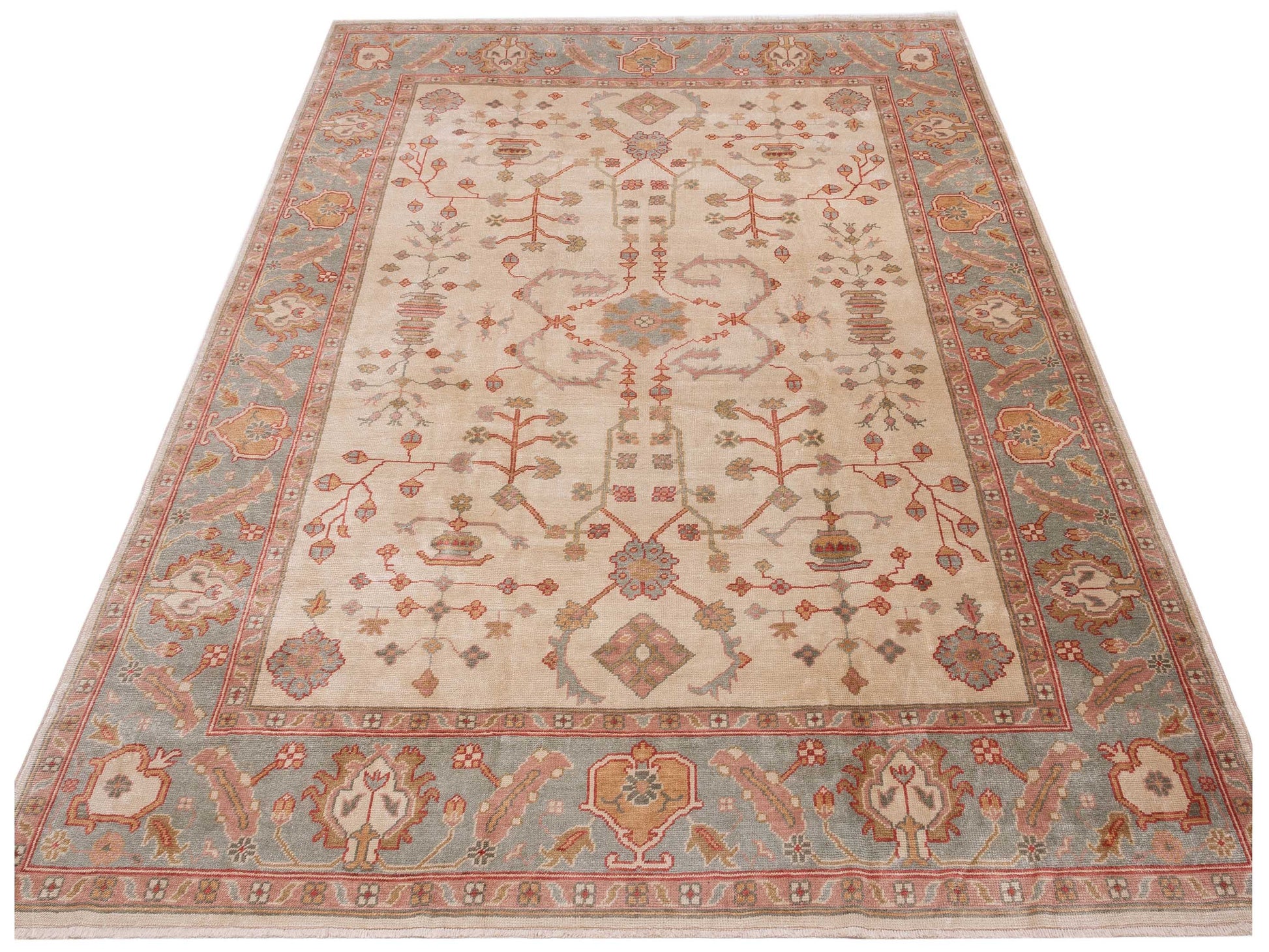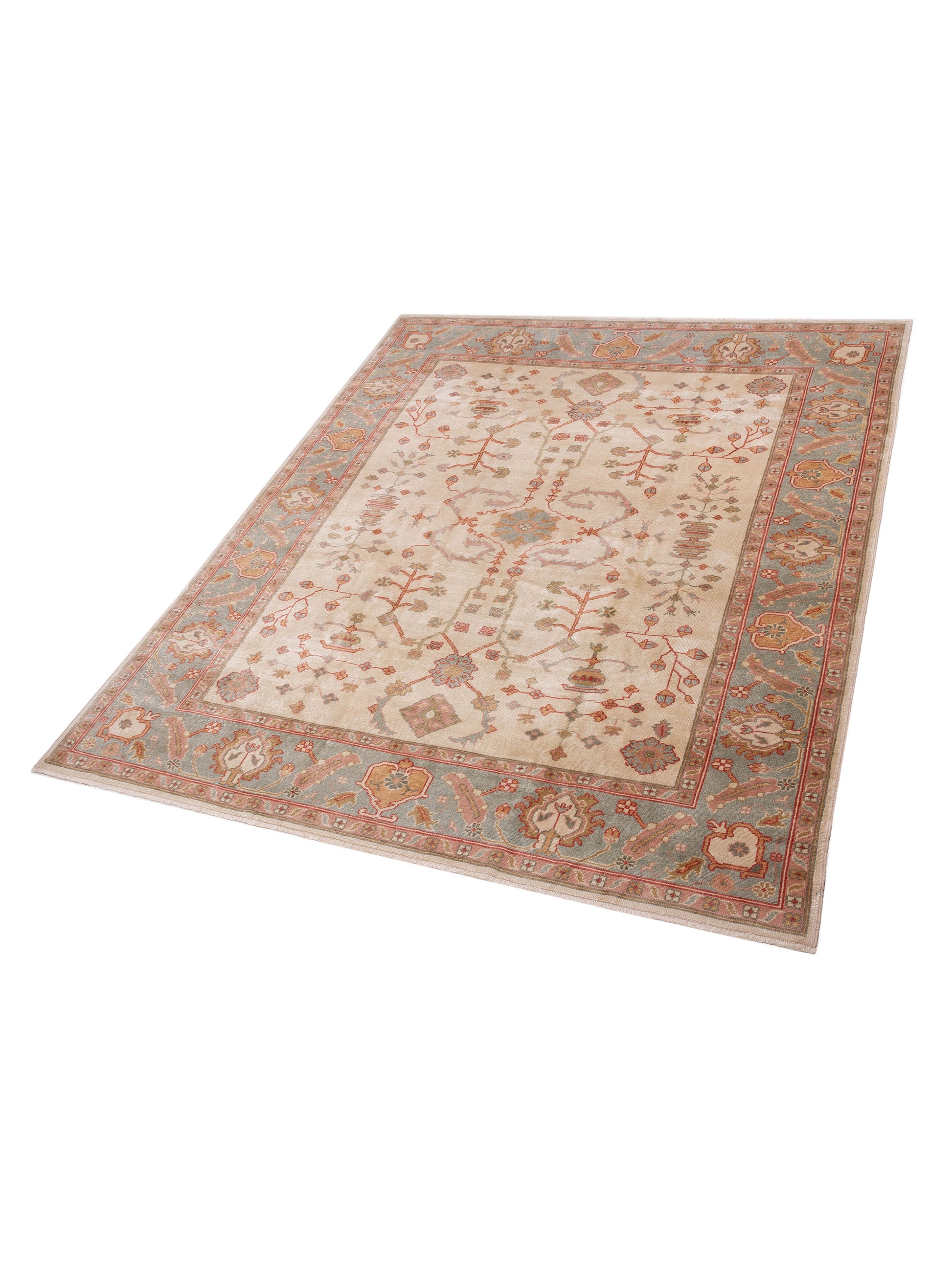 Angora Oushak 147762 Ivory Green 9.6x11.2 Hand Knotted Rug