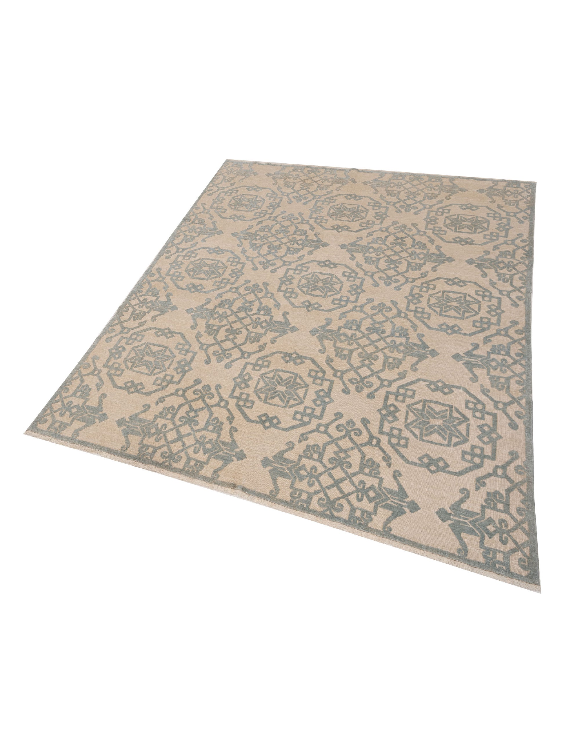 Defne Leaf Ivory Light Blue 8x9.6 Hand Knotted Rug