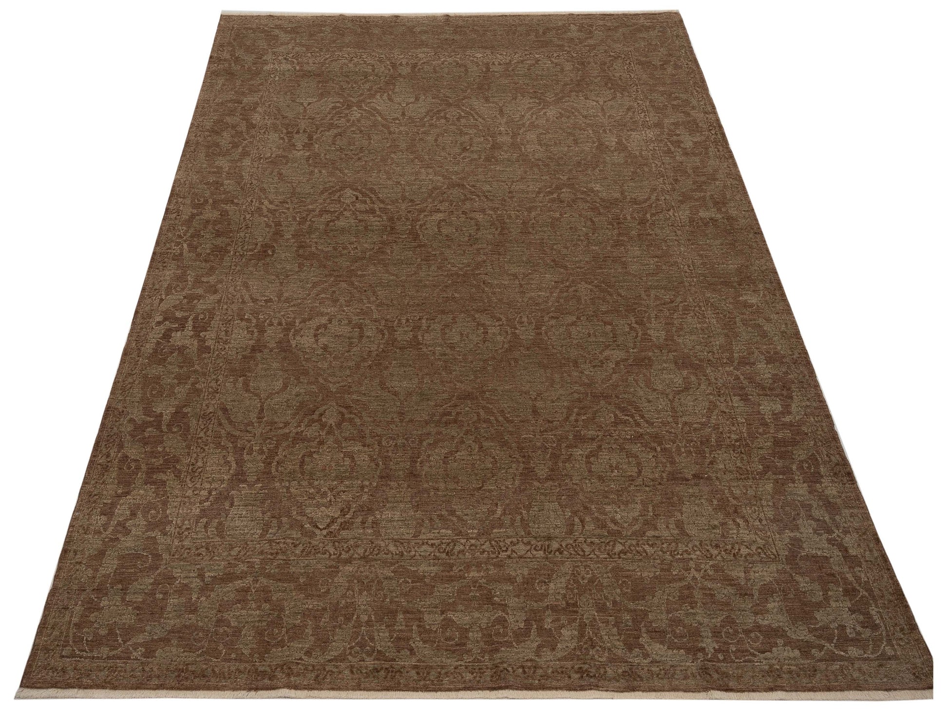 Defne Tulip Dark Brown Green 8.5x9.11 Hand Knotted Rug