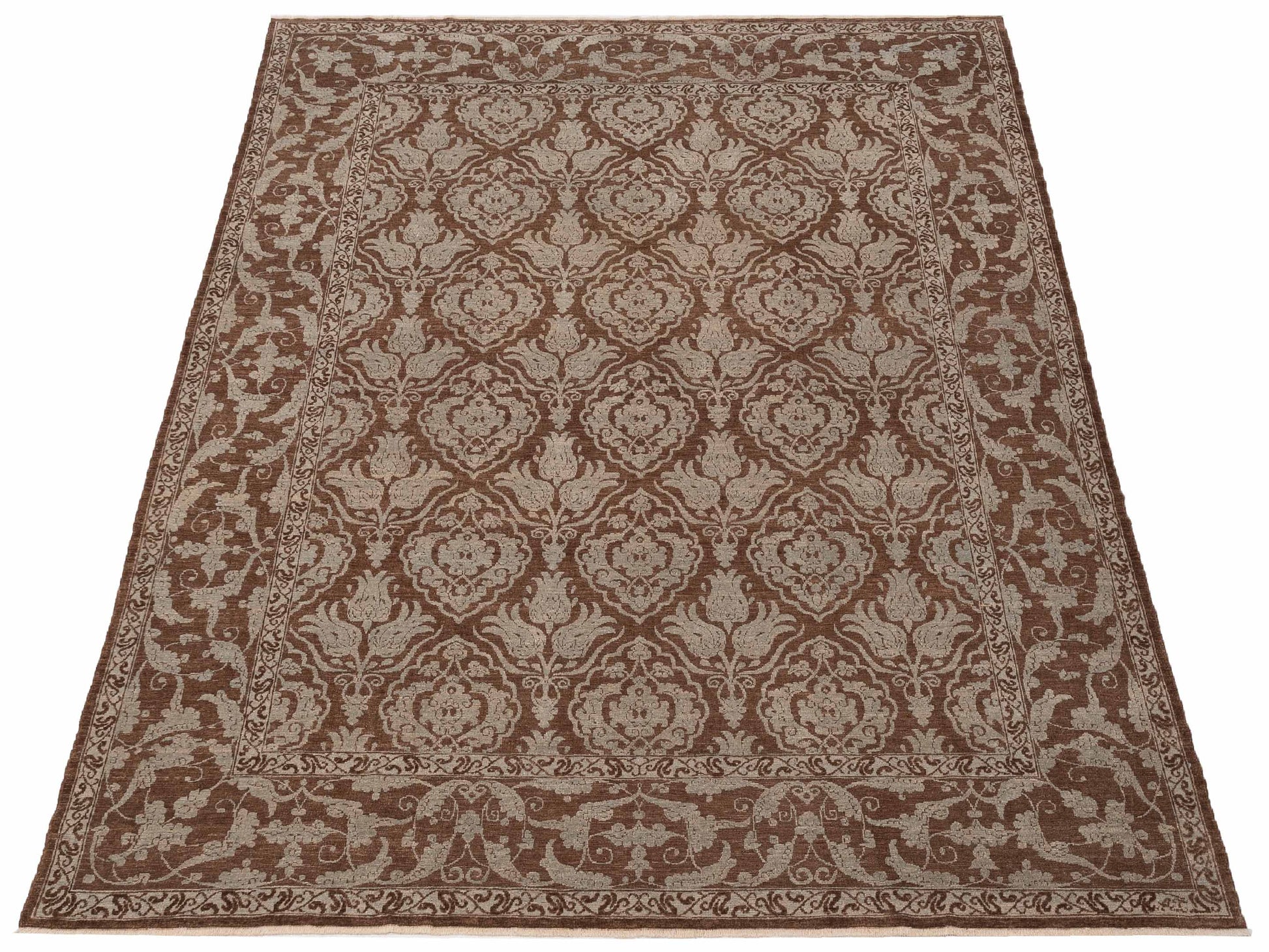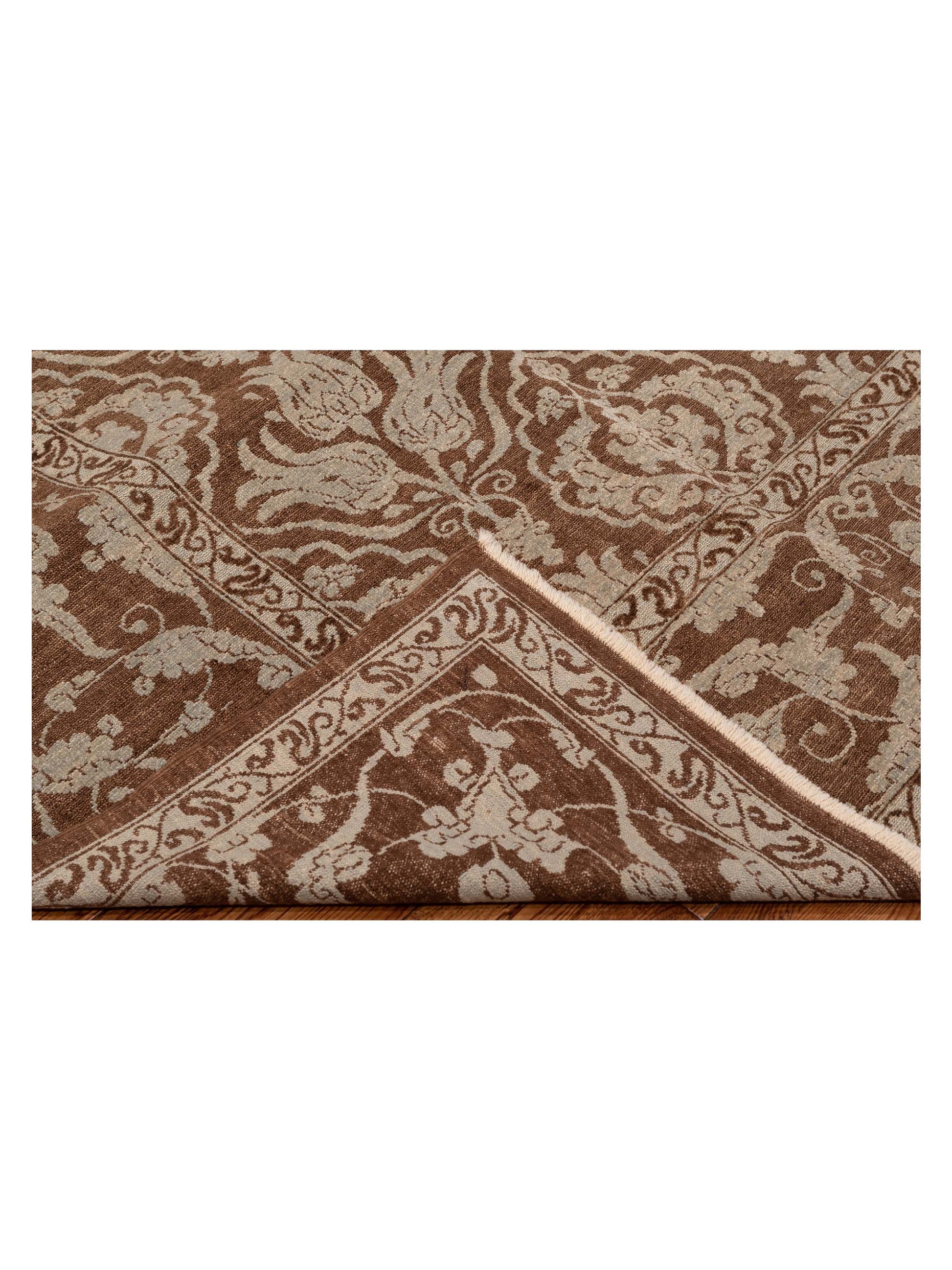 Defne Tulip Brown Ice Blue 9.5x11.8 Hand Knotted Rug