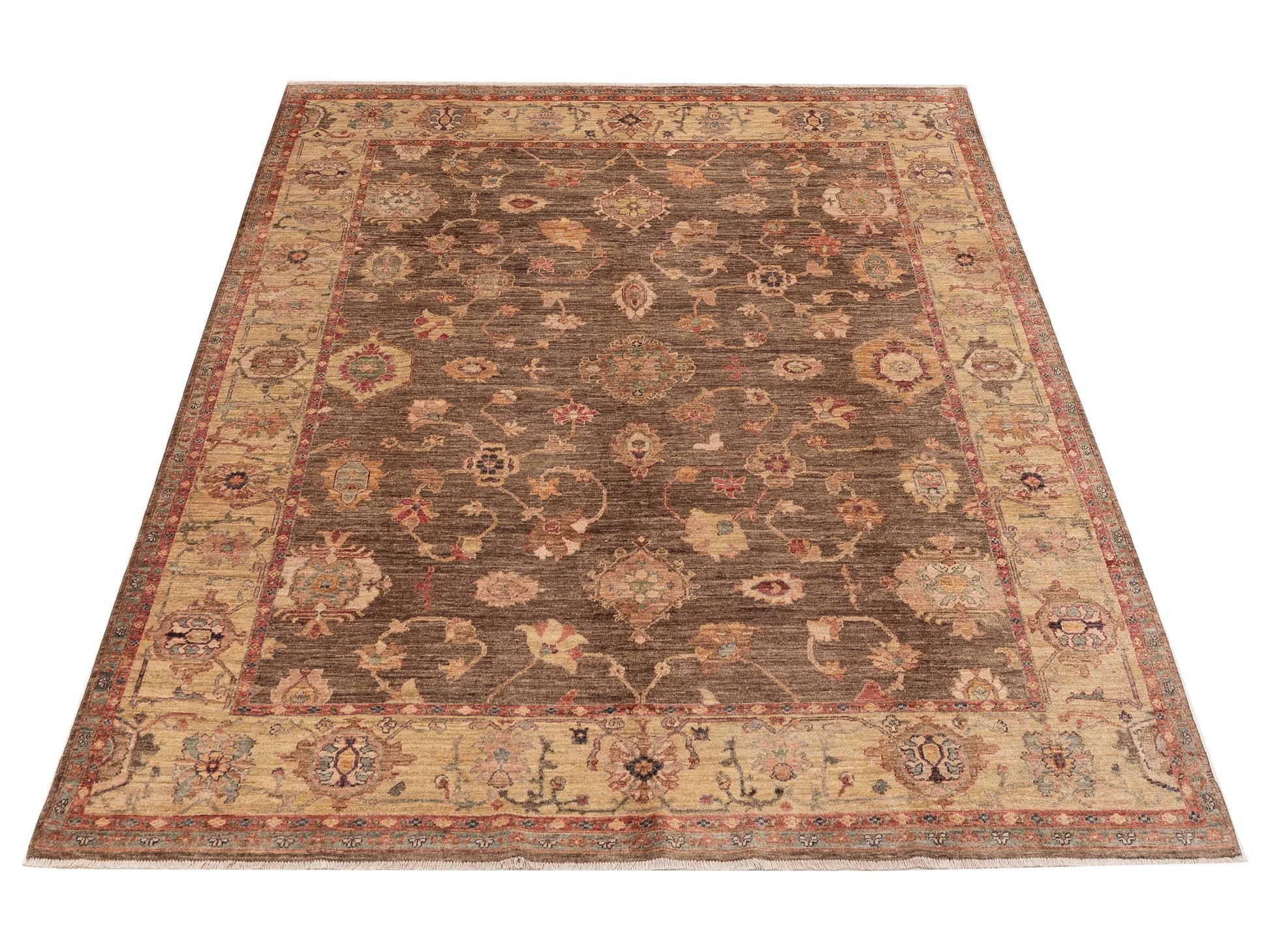 Elvan Tansu Brown Gold 8.2x9.10 Hand Knotted Rug